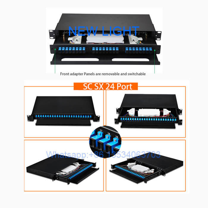 выдвижной корпус для оптоволокна, монтируемый в стойку, с 3 многомодовыми дуплексными адаптерами LC и лотком для сращивания... 6-портовый 19-дюймовый выдвижной оптоволоконный затвор для монтажа в стойку, с 6 одномодовыми адаптерами ST и лотком для сращивания.